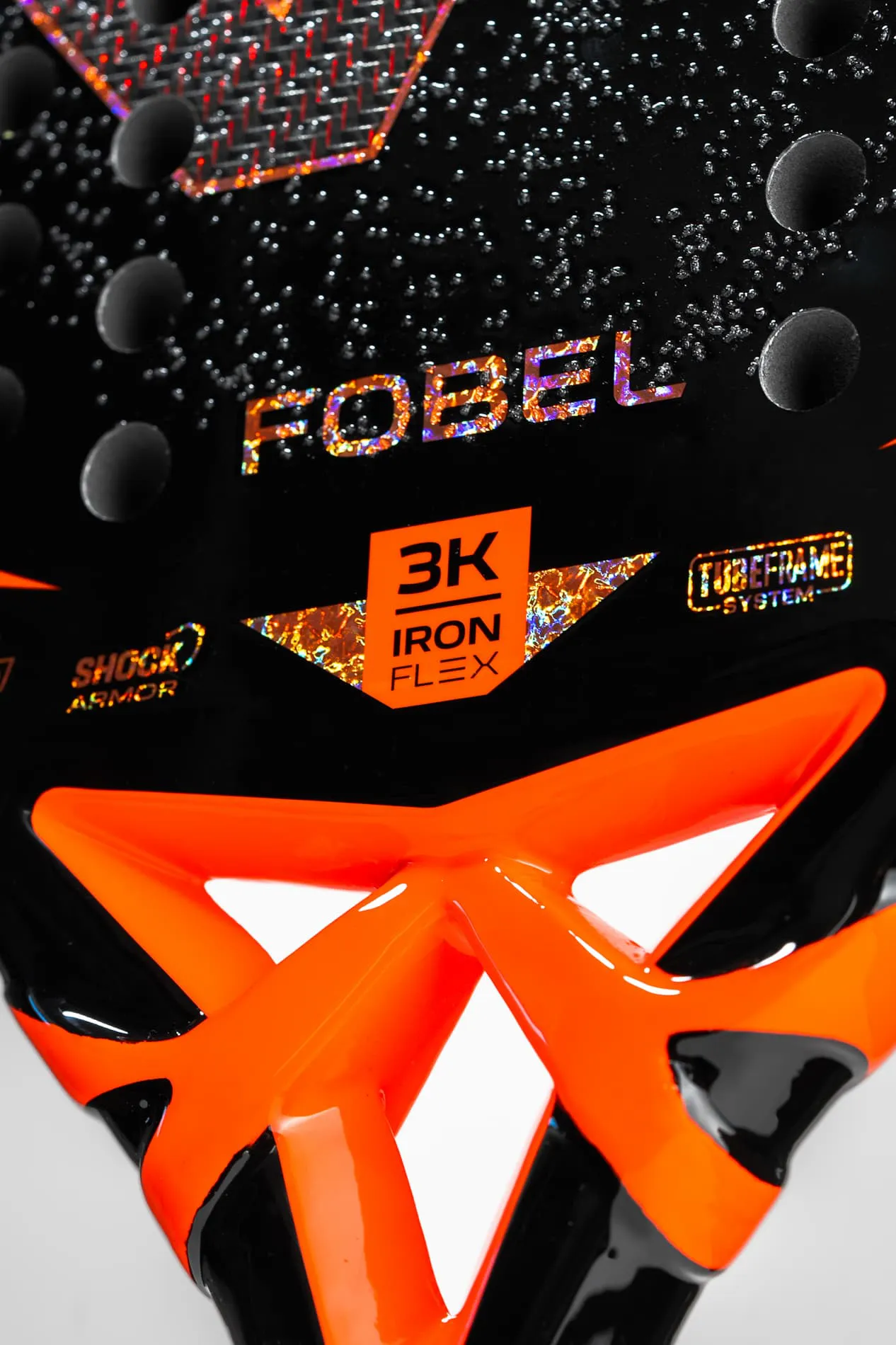 Construída com exclusividade em Full Carbon 3K IronFlex e com núcleo em Eva Pro, oferece excelente resposta nos golpes e equilíbrio perfeito entre controle e desempenho.